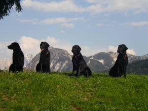Our Flatcoats live as part of the family.They all go to Obedience Classes as puppies & are well socialised. They are all health tested. My priorities as a breeder are good health & temperament.My priorities for my dogs are that they enjoy life to the full. They are all happy & healthy & much loved.