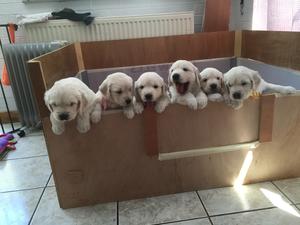We are excited to welcome Willow and Lewis' litter of 4 golden pups, 2 boys & 2 girls born on 23/10/25. We are looking for 5 homes. Puppies are raised in a bust family home, 6 grandkids. Mam and Dad have superb temperaments. Both are health tested with good scores.