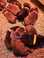 Incredible litter of 10 fox red shade of yellow Pups Fully health tested Ready to leave mid December Pet & working type Incredible bloodlines