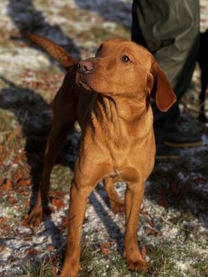 Open Field Trial Award Winner - Fintryhills Breeze of Bishopbrae "Red" is proven stud dog, who is very well bred (Field Trial Champion x Field Trial Champion) medium sized yellow Labrador.