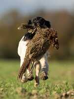 She is showing serious retrieve drive and always has been enthusiastic, and is most at home hunting. She already hunts bramble like an adult and I look forward to her adult formal training. Very quick learner with a totally amazing off switch from a young age.