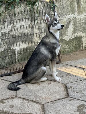 Foxy is a very playful mischievous little girl and come from a well known working kennel near Rennes France bringing in the lokiboden/howling spirits and fugitive linages she’s only 4 months but we are hoping she will be a great sleddog just like her parents and we’ve also started show training and she is shaping up nicely but needs lots more training for the ring 😊🐾🐾