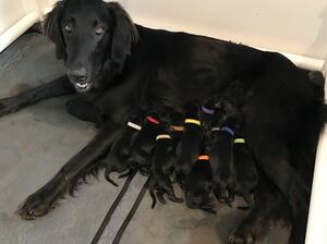 Owner : Sarah Hudson Breed : Flat Coated Retriever Location : Staffs, Staffordshire Birthdate : 19th April 2021 Colour : Black Health Tested ⓘ