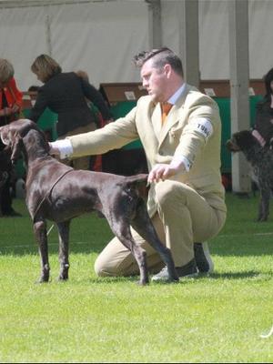 He has done very well at open and Championship shows , Having many RBPIS and BPIS then BIS and RBIS he has qualified for Welsh open dog of the year . Hughie has now topped up a total of 13 BIS's at open level and a total of 22 group 1's . He has gained his stud book number and a reserve challenge certificate . Also Hughie is now regularly worked on my local shoot . He has proved himself in the ring and the field and is a loving pet at home .