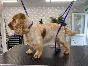 Hamish is a black and white ticked young dog with the most wonderful gentle out going temperament. He is producing large litters with strong healthy puppies.He is hereditary clear for PRA and FN. The colours he carries are as follows blue roans, blue roan and tan, black and white tri colour, black white and tan and orange roan and orange and white.