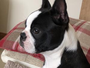 Owner : Marie Kelly Breed : Boston Terrier Location : Blyth, Northumberland Birthdate : 28th June 2019 Colour : Black & White Health Tested ⓘ