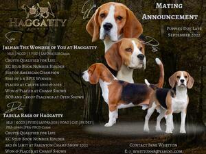 Jalhar The Wonder of You at Haggatty aka Elvis is available at stud to approved KC registered bitches. Elvis is Crufts qualified for life after having received his Stud Book Number in June 2022 under a breed specialist.