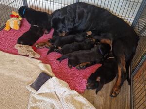 Owner : TEIGAN Breed : Rottweiler Location : Whitchurch, Shropshire Birthdate : 5th October 2019 Colour : Black & Tan Health Tested ⓘ