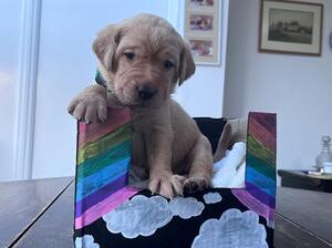 Carries the yellow gene having already sired black, yellow & fox red shade of yellow pups