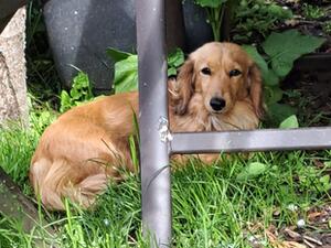 MJ, lovely Marley daughter, beautiful correct cream with dark pigment, black nose and black claws.