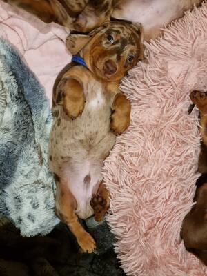 Owner : NovaVida Breed : Miniature Smooth Haired Dachshund Location : Newark, Nottinghamshire Birthdate : 23rd June 2020 Colour : Chocolate & Tan Health Tested ⓘ