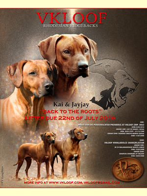 I am expecting the puppies to arrive sometime during the 3rd week of July 2016. This will be Jayjay's 2nd litter. Kai, the sire was conceived via artificial insemination, his sire was born in Zimbabwe back in 1979; Kai's mum was imported to Germany from Vignon Kennels in South Africa.