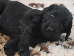 Pagan's puppies are here and she has had surprised us with 7 black puppies (3 dogs & 4 bitches) and one 1 liver (Bitch). The liver bitch is reserved.