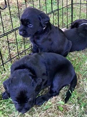 All velvet black and with inquiring mischievous minds. Their parents have excellent health scores and have exceptional pedigree - especially the sire who is a Field Champion with fabulous looks and amazing talent.
