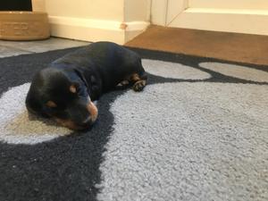 Beautiful Black and Tan puppy available. KC reg, PRA hereditary clear, she will have had her vet check, 1st vaccination, be microchipped and regularly wormed before moving to her new home. This lovely puppy will be ready to move to her new home the second week of October with 5 weeks kennel club insurance, a puppy pack and a lifetime of support!