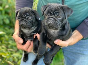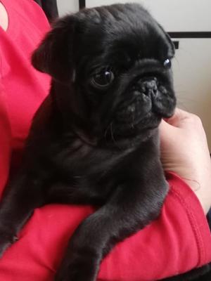 Proudly offer a beautiful black Pug baby girl from our gorgeous litter from our ''Knox.'' Both parents are fit and health tested, and have wonderful temperaments. Our babies have been home reared with lots of TLC. Vaccinated, microchipped and KC registered. Started on housetraining and lead work. ***The puppy is DNA tested for PDE***