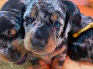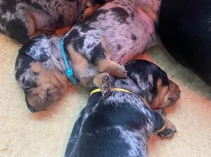 Gorgeous litter of silver dapple and tan puppies.
