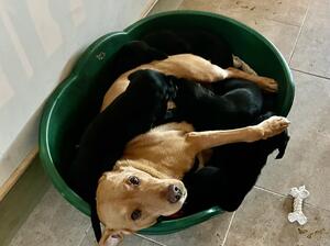 3 black Labrador dogs available from small litter of 5 from excellent working stock. Have been reared indoors with Mother, Grandmother and Aunt. Handled in family environment around children since birth. Will be sold with 1st vaccination, microchipped KC Reg & health checked by my vet. Also supplied with sample bedding and bag of their puppy food. Puppies already vehicle experienced. In need of loving homes.