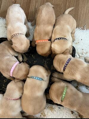 Born on 06/03/2022. Beautiful litter of pedigree Labrador retriever puppies. All yellow. Parents health tested and great temperament making them perfect family dogs. ** NONE AVAILABLE **