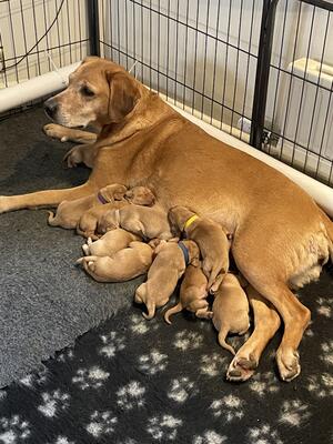 We are very excited to announce the confirmed litter sired by the very handsome “Rupert” a kind natured, loving and biddable dog who enjoys working life. Mum Milly is our home bred girl, we have her Mum too, who enjoys an active life in the countryside. Milly is a proven fabulous Mum attentive and caring to her pups. Her enthusiasm for life is infectious yet she is loving and always wanting to please.