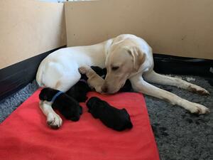 I spent a long time researching a sire who would compliment Mabel and I couldn’t be more thrilled with the choice. They are full of field trial champions on both sides with excellent health scores.