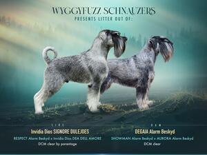 Pepper&salt puppies born 19.07.2023. They will be raised at home, mum is our beloved family pet, our son's best friend. Both parents have been successful in the show ring, DCM clear. Enquiries welcome.