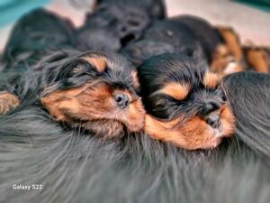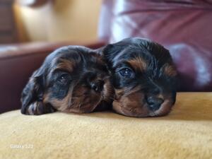 Kennel Club registered Black & Tan Cavalier King Charles Spaniel puppies. 2 boys available. We bred our girl to retain some pups for our family. Mum is DNA tested clear for Episodic falling, Curly Coat and Dry Eye. Grandparents are DNA tested, heart tested and BVA eye tested. Both parents are below 12 inches in height and are petite build.