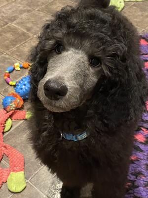 Gracie is a health tested silver standard poodle from a long line of champions. We chose not to show Gracie but her siblings have had much success in the show ring and at agility.