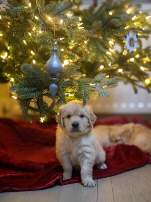 Delighted to announce that my golden retriever cream girl Rosie gave birth to a gorgeous litter of 7 puppies on 17th November 2023. Rosie is an absolute pleasure to live with, sweetest nature, very affectionate and loving. She is a super gentle girl who is also a Pets as Therapy dog.