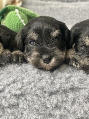 My mother bred miniature schnauzers for more than 40 years. Me and my sister now breed them. Me and my two children run a small stable yard with lots going on, the puppies are very well rounded and socialised they get lots of attention/cuddles from lots of different people , children of all ages .