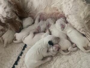 Litter born Feb 25 th . 3 tri girls , 3 tri boys