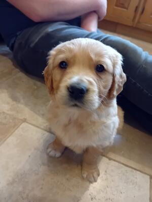 The sire Highlews King Kristofferson, he is a lovely handsome dark coloured working golden retriever who is fully health tested. Lots of photos available of Kristoff, we can send these across no problem.
