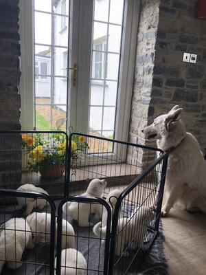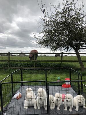 Our litter G was born 10th of March , 6 bouncy boys and 1 little girl . Both parents excellent temperaments and both did well in the show rings . Pups are raised following the puppy culture socialisation protocols to maximise their potential . They are due to receive their first vaccines on 8th of May and will be ready to go to their homes starting 10th May . We welcome prospective families to come meet us and our pack in our home and to discuss further details .