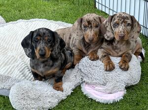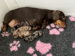 We have been breeding this wonderful breed for over 10 years. We have a 5 star license and are meeting all of the standards at the highest levels. All our dogs live in the house and they are part of the family. We put their health and well being first and our retired girls stay with us for life so you will meet Great Grandma, Grandma, Aunties and Sisters! Our puppies are raised in the family home and have the best possible start in life. They have lots of love, stimulation and access to enrichment toys and activities. By the time the puppies are ready to leave they will be fully integrated with the other dogs in the household and will be well socialised, confident, happy puppies. They will be vet health checked, microchipped, vaccinated, wormed and flea treated up to date. A puppy pack is provided consisting of food, scented blanket, enrichment toys and a book on owning a Dachshund. You will have 5 weeks free insurance for peace of mind along with our information pack relating to the Dachshund breed, all paperwork and a contract. We offer lots of support and a lifetime of advice for our puppy owners. Please contact Lorraine for any further information and questions.