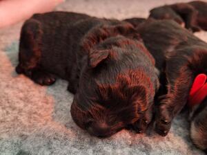 The puppies come from a busy loving household. Will be very well socialised with children, dogs and other animals. Born and raised in the middle of the home they are very chunky, robust and adorable. Parents are hip and elbow scored and have 5 generation lineage free of genetic disease.