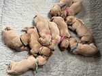 This is Quinn’s fourth & final litter. Previously she has produced lovely litters of fox red shade of yellow puppies, with a superb temperaments, the owners keep in touch & are delighted with their puppies, now obviously dogs.