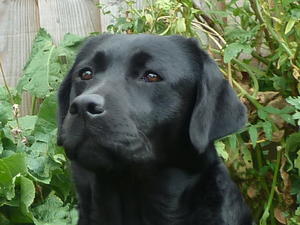 Black bitch of quality with good, harsh coat, head balanced, well placed shoulders, good ribs, level topline, correct tail & well turned stifle.