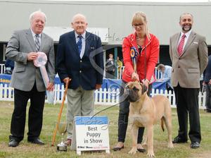 PD (5) 1 Palmer & Banner's Priambulls A Touch Of Magic, top quality, handsome puppy, nice square head, leading down to good reach of neck, good front with strong topline & correct tailset, good hind angulation, moved soundly & with purpose. A huge congratulations to his owners for achieving BPIS with this lovely promising youngster. BP, PG1 & BPIS