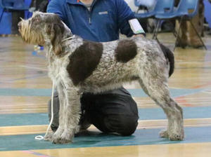 Easily the winner of this class for me. Standing square, good lean head with correct divergence, nice strong neck and excellent coat. Well muscled thighs and she moved soundly. Just a shame there wasn't a RBOB to award today.