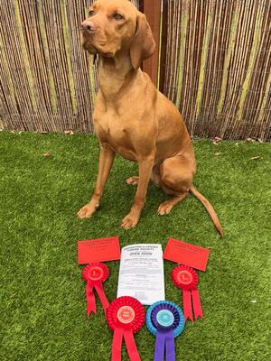 1. Quinn’s Bremetenacum Leitha of Evanza - Hungarian Vizsla. Lovely feminine head, good reach of neck, powerful shoulders, impressive profile, correct bone, excellent on the move, Best AVNSC.