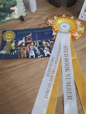 Ebony was placed 3rd in strong class of 12 giving her stud book Number crufts qualified for life
