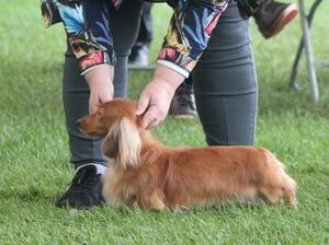 Darlington Championship Show16th September 2023Judge : Mrs V PHILLIPSBreed : Miniature Long Haired DachshundReserve Post Graduate Dog